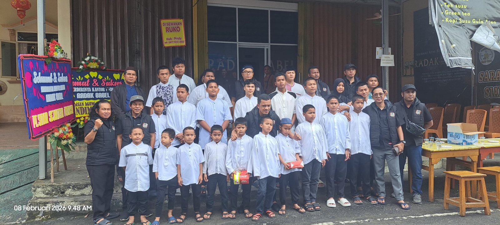 Peresmian Kantor Radak Babel turut dirangkaikan dengan kegiatan sosial berupa penyerahan santunan kepada 25 anak yatim piatu dari Panti Asuhan LKSA Muhammadiyah Pangkalpinang. Acara dilanjutkan dengan prosesi pemotongan nasi tumpeng oleh Bang Doi yang diserahkan kepada Ketua Tim Radak Babel, La Ode M Murdani.